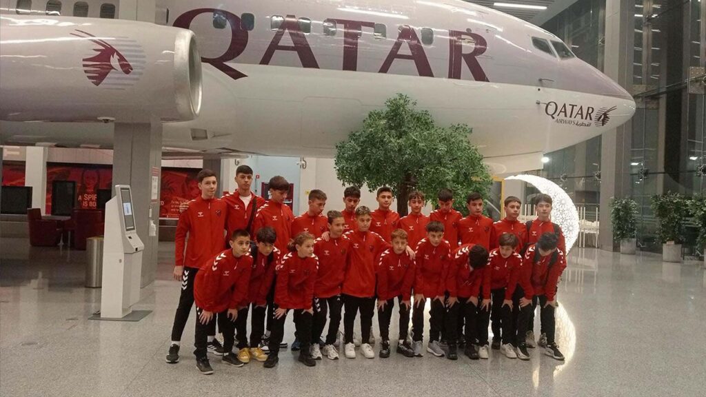 Aydın’ın Kuşadası ilçesinden Katar’a futbol turnuvasına katılmak için giden Küçükada Spor Kulübü’nün yaşları 11 ile 13 arasında değişen 21 futbolcusu
